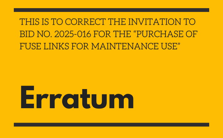 This is to correct the Invitation to Bid No. 2025-017 for the “Purchase of Lineman Tools”.