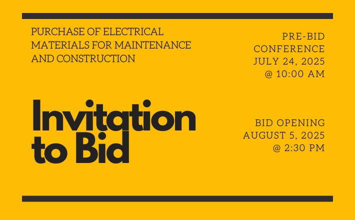 Iloilo I Electric Cooperative Inc. (ILECO I) through its Bids and Awards Committee (BAC), invites interested bidders to participate in the Public Bidding of the Project, “Purchase of Electrical Materials for Maintenance and Construction” in accordance with the Republic Act (RA) 10531 and RA 9184 and its Revised Implementing Rules and Regulations.